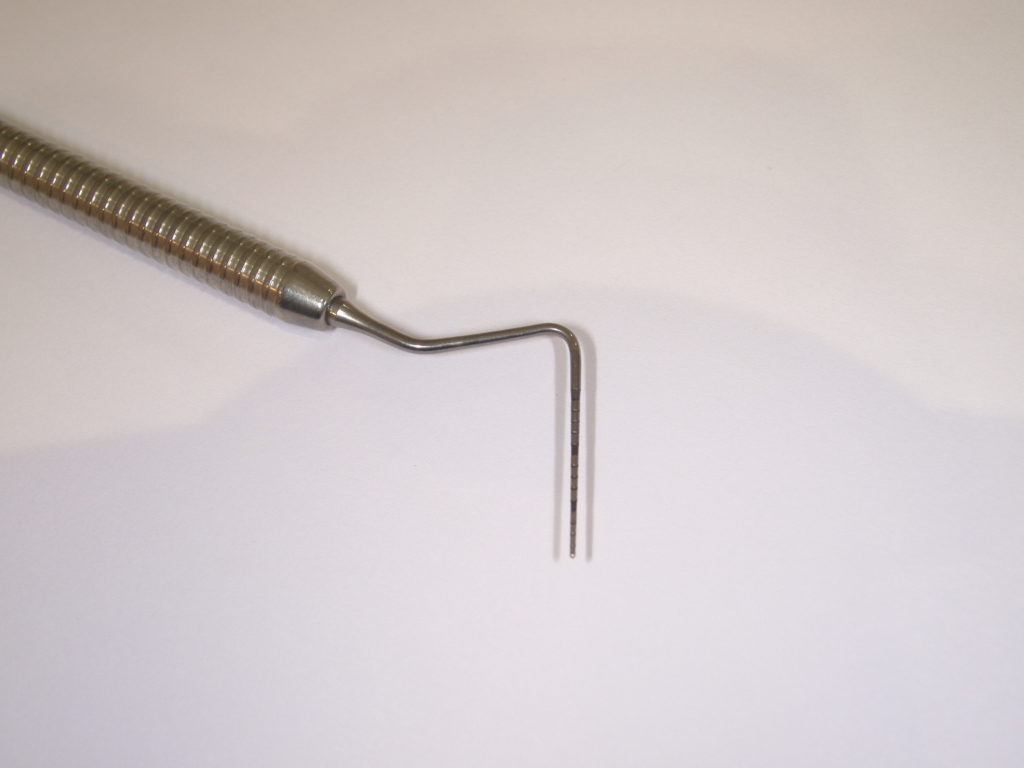 先端に目盛りが付いていて、歯周病の検査に必須です。